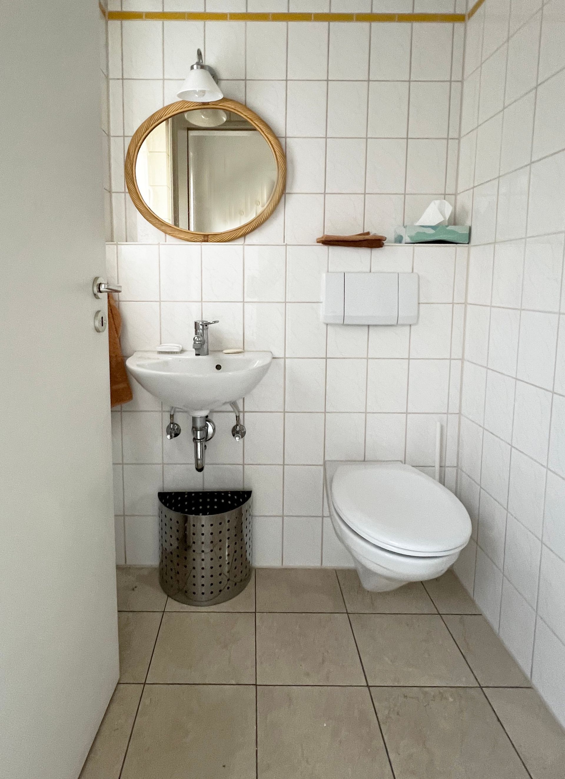 Durch die Haustür im Erdgeschoß kommen Sie direkt in die Diele. Von dort aus erreicht man das helle Gäste-WC, die geräumige Küche und den großen Wohn-Essbereich. Über das Treppenhaus gelangen Sie in das erste Obergeschoß. Dort befinden sich drei Schlafräume, eine Abstellkammer und ein Tageslicht durchflutetes Bad mit Badewanne. Über eine Leiter kommt man in das Dachgeschoß, dass mit relativ wenig Aufwand zum Wohnraum ausgebaut werden kann, da die Dämmung vorhanden ist und der Boden bereits mit Holzplatten belegt ist.
