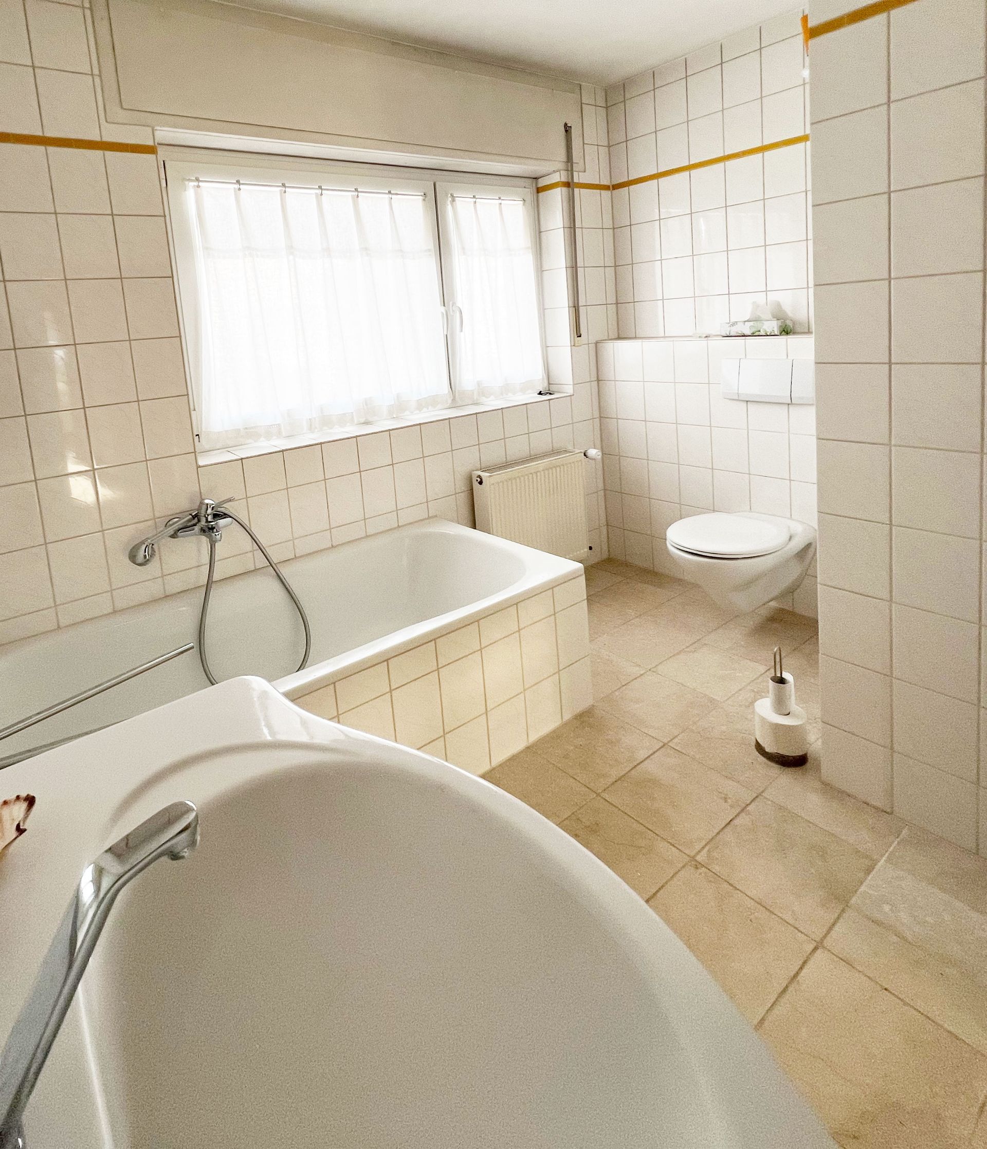 Merkmale: voll unterkellert, Dach ausbaufähig, Terrasse, Garten, Balkon, Garage, Bad mit Fenster und Wanne, Gäste-WC, Parkett- und Fliesenboden, Parkett, Kunststofffenster, DSL-Anschluss, Kabelanschluss, Abstellraum, 2 Geschosse, Baujahr1965